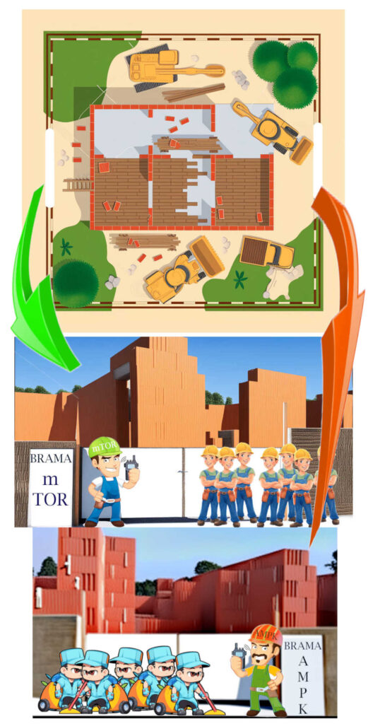 Stróż1- mTor dostaje sygnał do otwarcia bramy(od szefa-hormon wzrostu) i ekipa budowlana insulina i igf1 dostają się na budowę.
