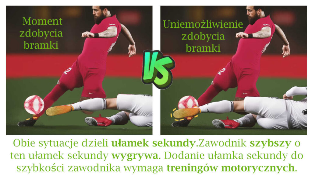 Trenerzy, a coraz częściej sami zawodnicy, zdają sobie sprawę z tego ,że większa siła, większa eksplozywność, większa szybkość czy zwinność mogą zdecydować o wygranej lub porażce. Napastnik który o ułamek sekundy wyprzedzi reakcję obrońcy ma większą szansę posłać piłkę do bramki i dać zwycięstwo swojej drużynie. Innym razem, szybszy o kilka milisekund obrońca powstrzyma napastnika drużyny przeciwnej i uniemożliwi mu zdobycie bramki. Bokser szybszy o ułamek sekundy zdąży uniknąć nokautującego ciosu przeciwnika i da radę zadać mu kontrę zanim tamten będzie na nią gotowy. Koszykarz skaczący 2 cm wyżej od swojego przeciwnika wygra z nim w walce o piłkę pod koszem. Zwycięstwo od porażki dzielą milisekundy czy centymetry o których często decyduje przygotowanie motoryczne zawodnika.